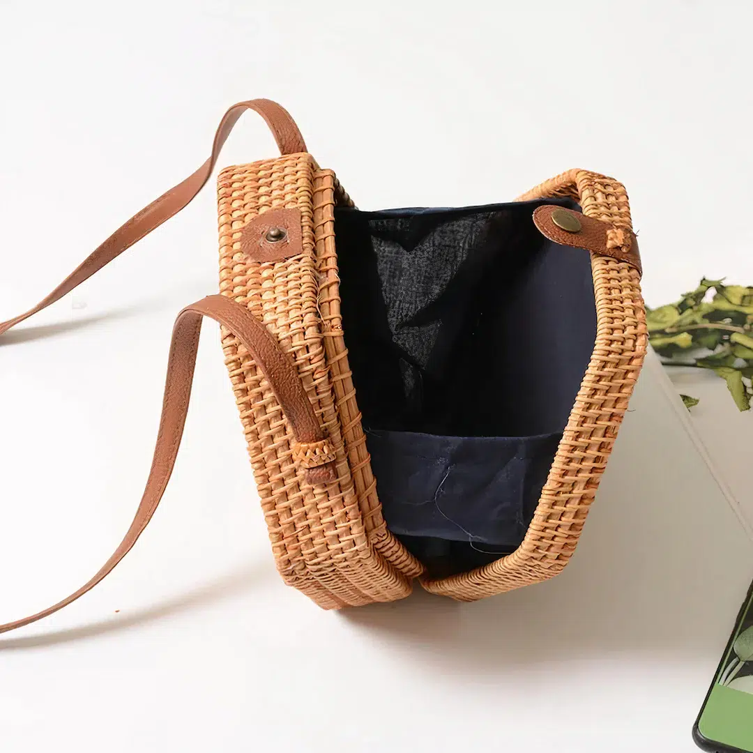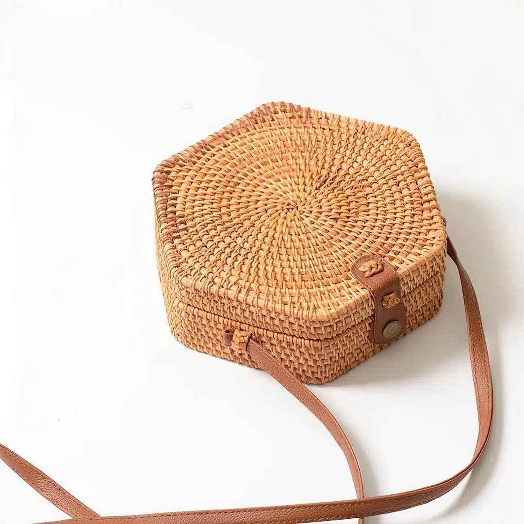 Plongez dans l’univers bohème chic avec le Sac rond osier rotin, un accessoire qui évoque des images de promenades sous le soleil et de marchés en plein air.