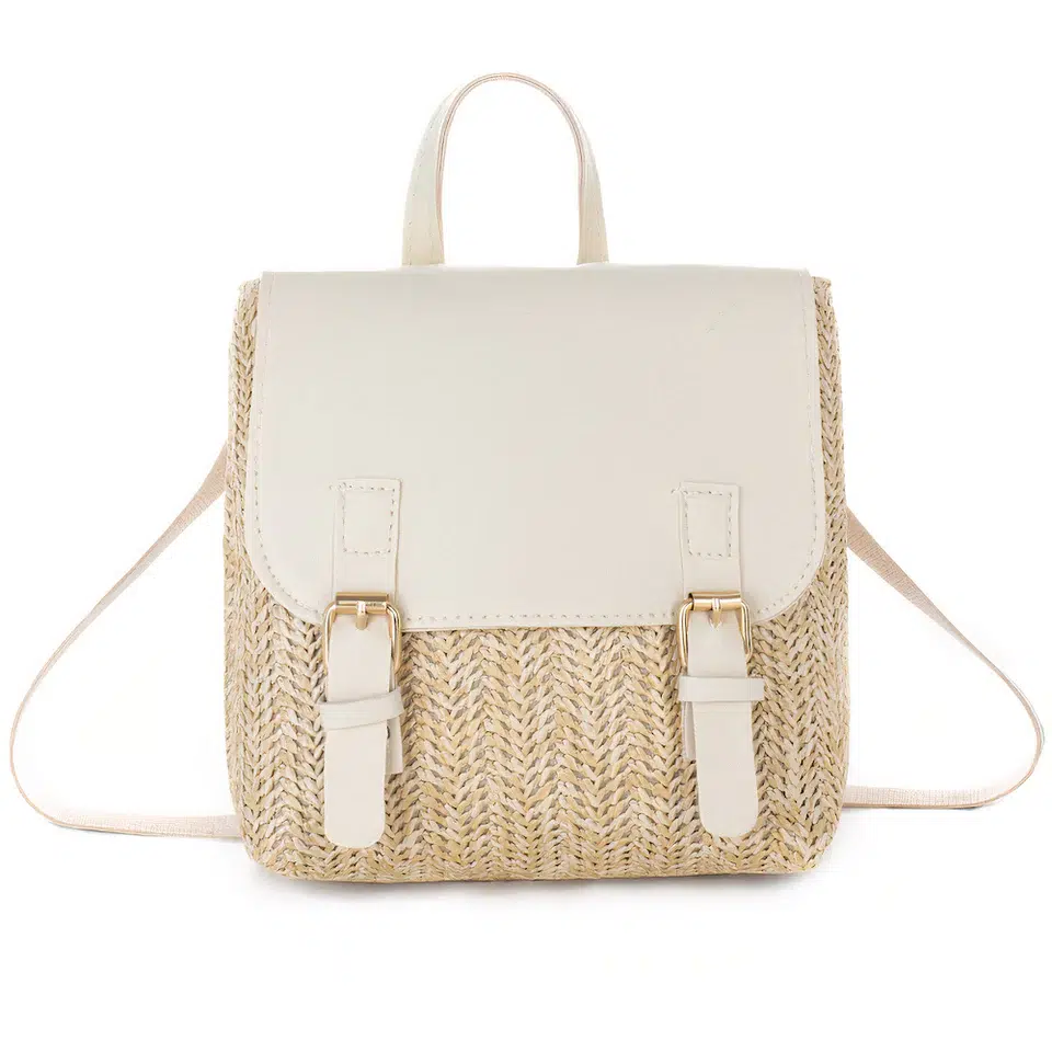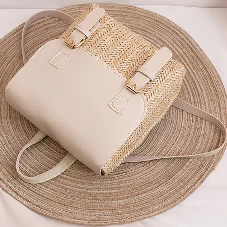 Sac à dos paille cuir blanc