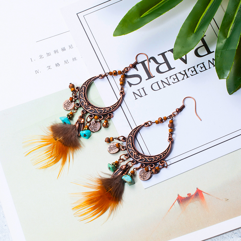Boucles d’Oreilles Bohème à Plumes