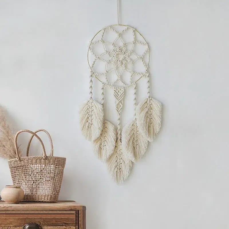 Cet attrape rêve en macramé capture la quintessence de traditions millénaires, mêlant symbolisme protecteur et beauté intemporelle.