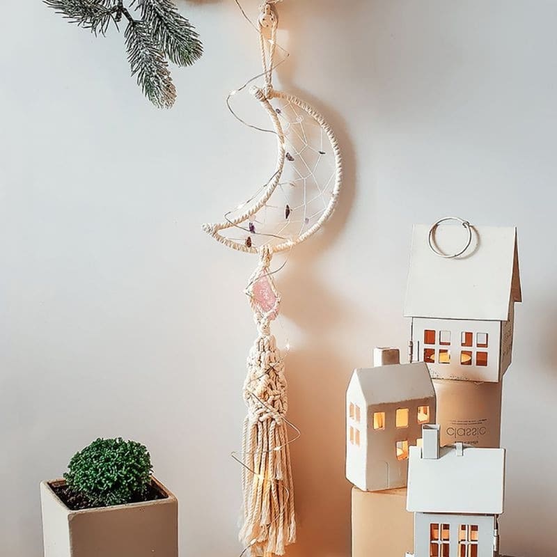 Émergeant des profondeurs du temps, l’Attrape rêve pierre macramé capture l’âme intemporelle de la culture bohème.