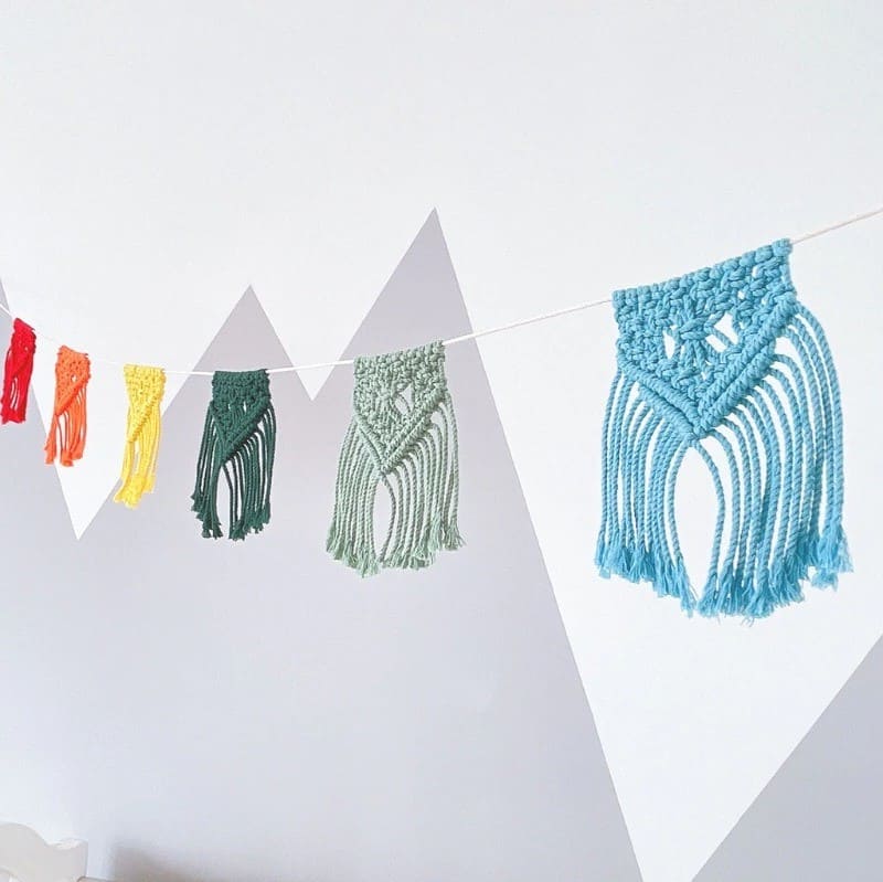 Cette Guirlande fanion macramé, soigneusement façonnée, est un souffle d’aventures passées, de soirées à la belle étoile, et de doux rêves d’errance.