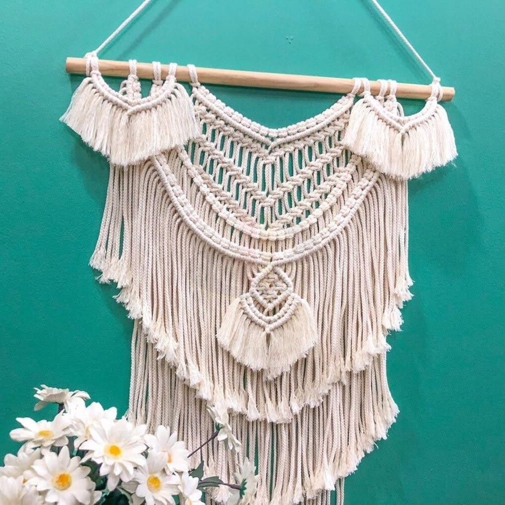 Laissez votre esprit vagabonder vers des terres lointaines avec notre Tenture murale macramé.