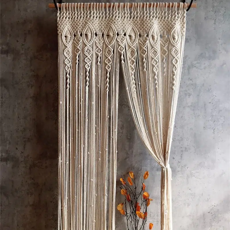 Élégance et confort réunis. Le rideau est aussi beau qu’agréable, avec un design en macramé qui ne passe pas inaperçu.