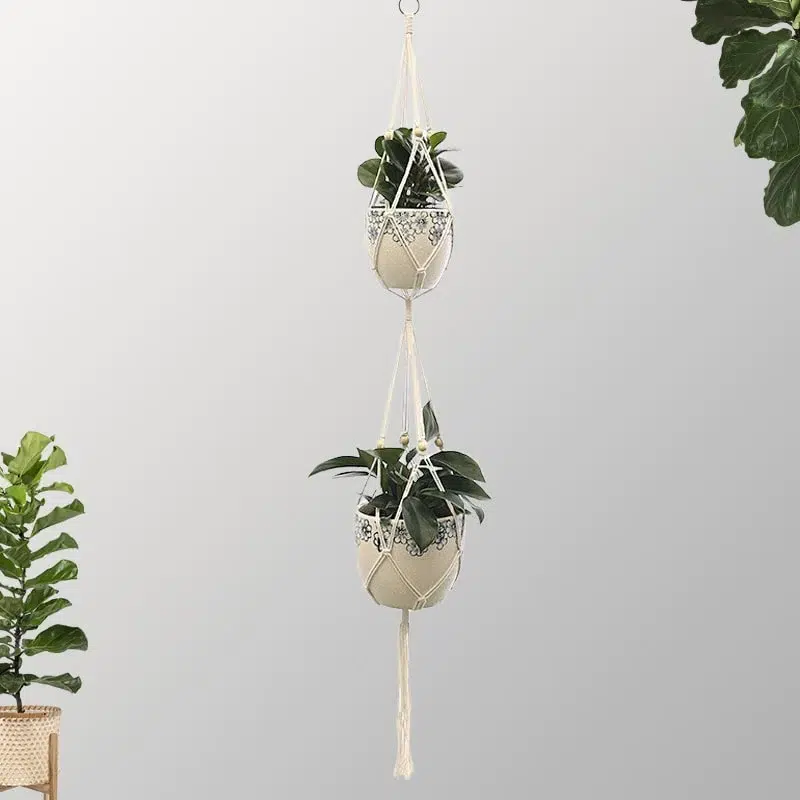 Plongez-vous dans l’univers bohème grâce à notre Suspension macramé double.