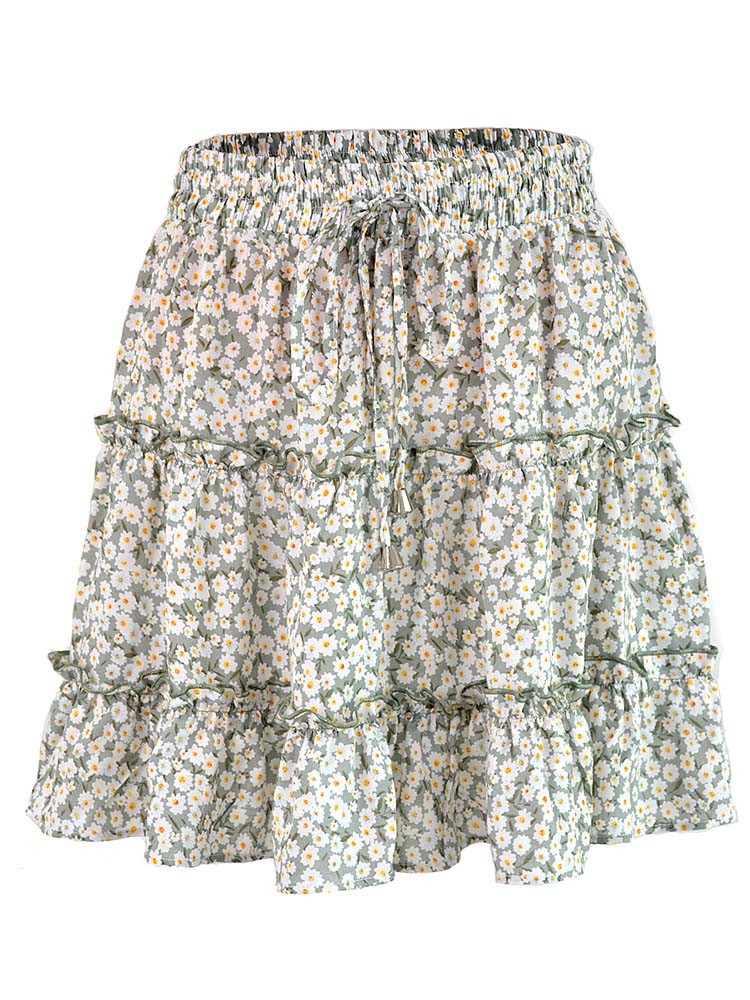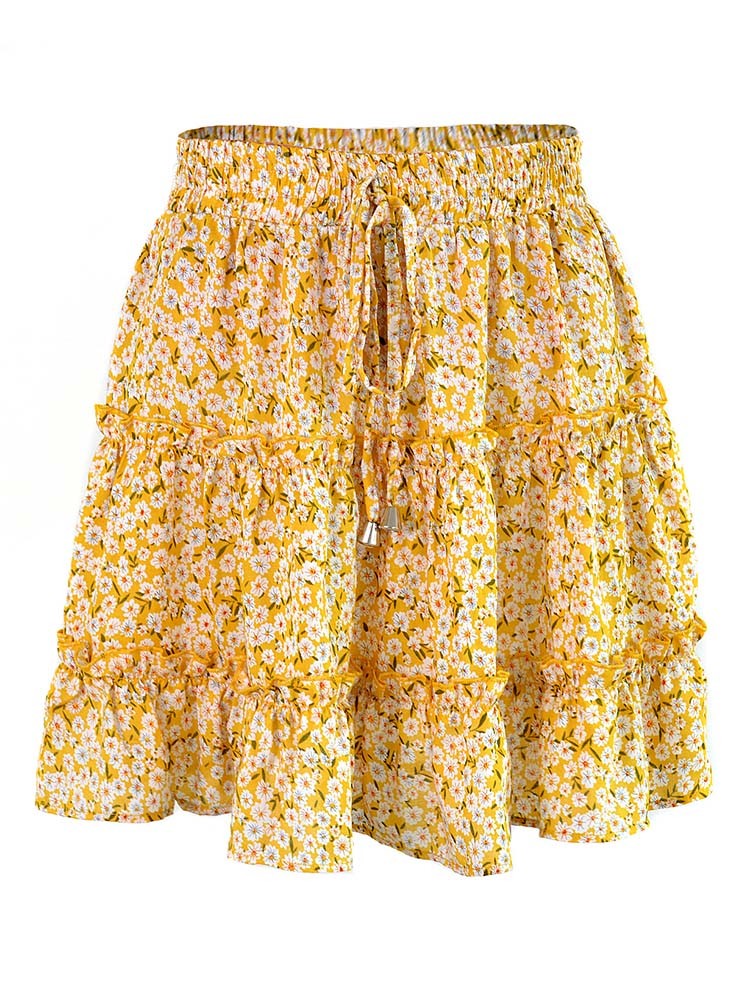 Embarquez pour un voyage sensoriel avec notre Mini-Jupe Bohème à Fleurs et Volants.