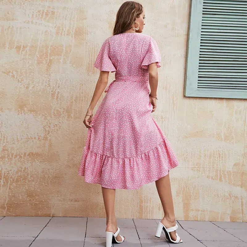 Robe Style Bohème Rose Décolleté en V